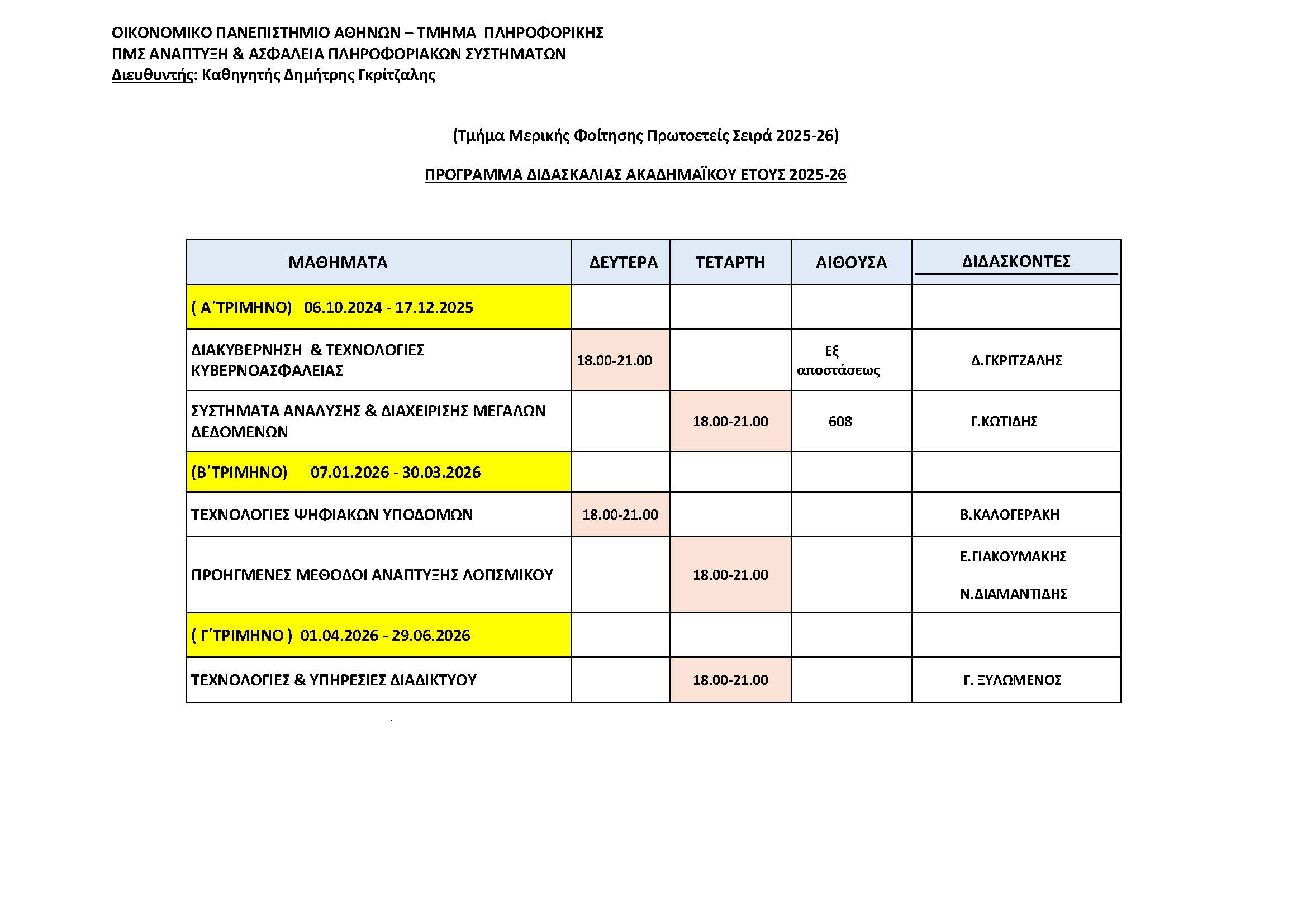 ΠΡΟΚΗΡΥΞΗ ΤΟΥ ΝΕΟΥ ΠΜΣ ΜΕ ΤΙΤΛΟ ΑΝΑΠΤΥΞΗ & ΑΣΦΑΛΕΙΑ ΠΛΗΡΟΦΟΡΙΑΚΩΝ ΣΥΣΤΗΜΑΤΩΝ, ΑΚΑΔ. ΕΤΟΣ 2020-21